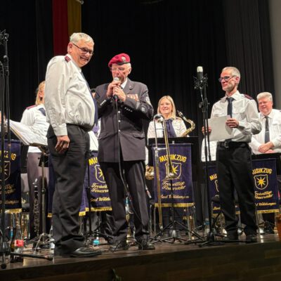 Für einen besonderen Moment sorgte die Ehrung des Musikzugführers Heinrich Wilhelmi, der während des Konzerts das Ehrenzeichen für Hessische Feuerwehrmusiker in Gold verliehen bekam. Diese Auszeichnung würdigt sein langjähriges Engagement, seine musikalische Leidenschaft und seinen Einsatz für die Feuerwehrmusik in Hessen. Das Publikum gratulierte mit herzlichem Applaus.