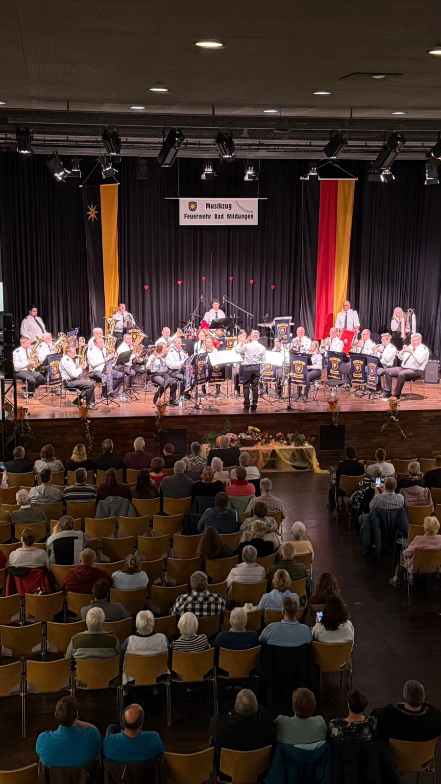 Für einen besonderen Moment sorgte die Ehrung des Musikzugführers Heinrich Wilhelmi, der während des Konzerts das Ehrenzeichen für Hessische Feuerwehrmusiker in Gold verliehen bekam. Diese Auszeichnung würdigt sein langjähriges Engagement, seine musikalische Leidenschaft und seinen Einsatz für die Feuerwehrmusik in Hessen. Das Publikum gratulierte mit herzlichem Applaus.