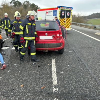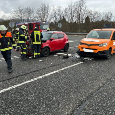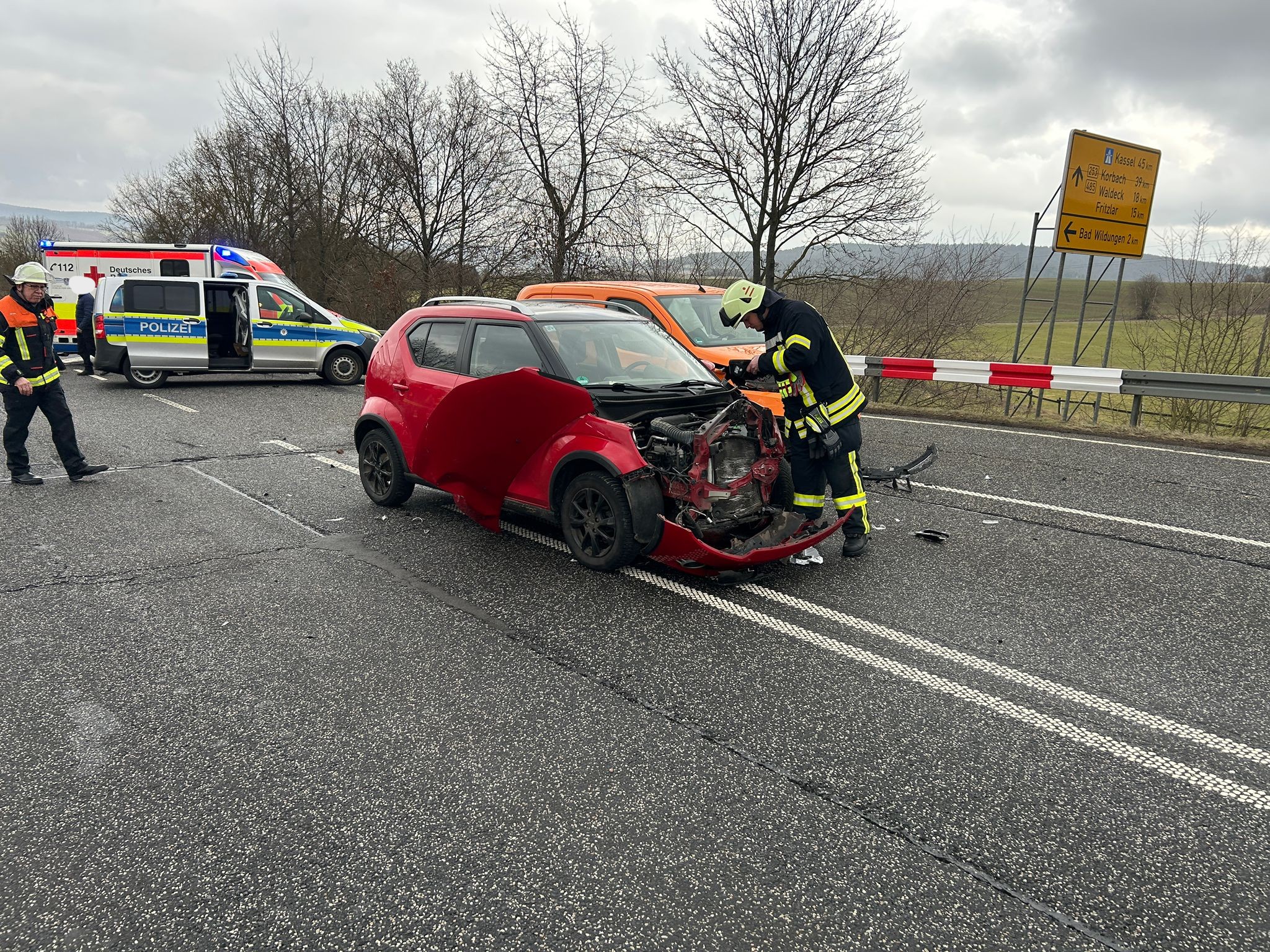 Am Mittwochvormittag wurde die Feuerwehr Bad Wildungen gemeinsam mit dem Rettungsdienst und der Polizei zu einem Verkehrsunfall auf der B 253 über das automatische Notrufsystem (E-Call) eines PKW alarmiert. An der Abfahrt Stadion waren 2 PKW frontal zusammen gestoßen.