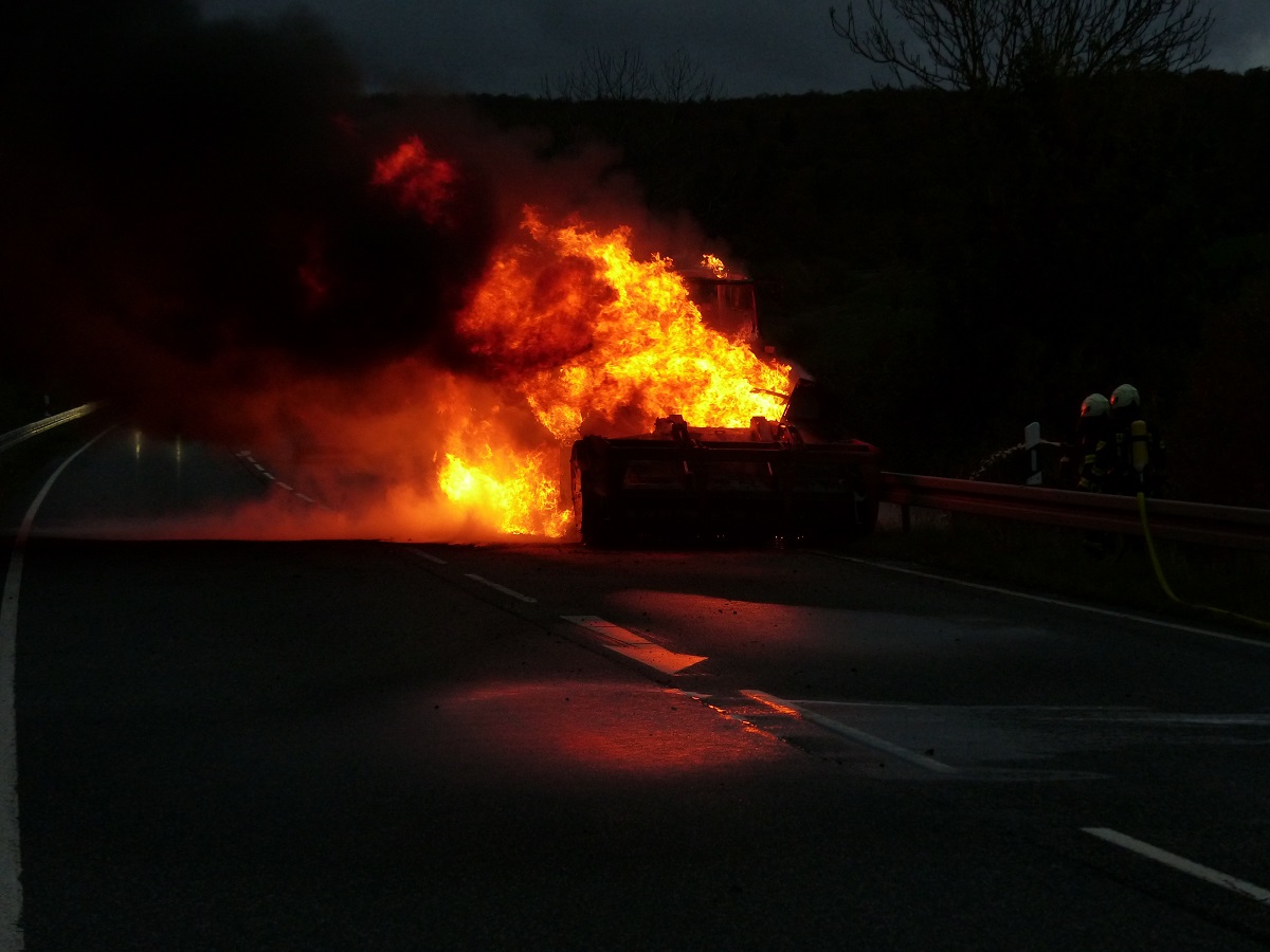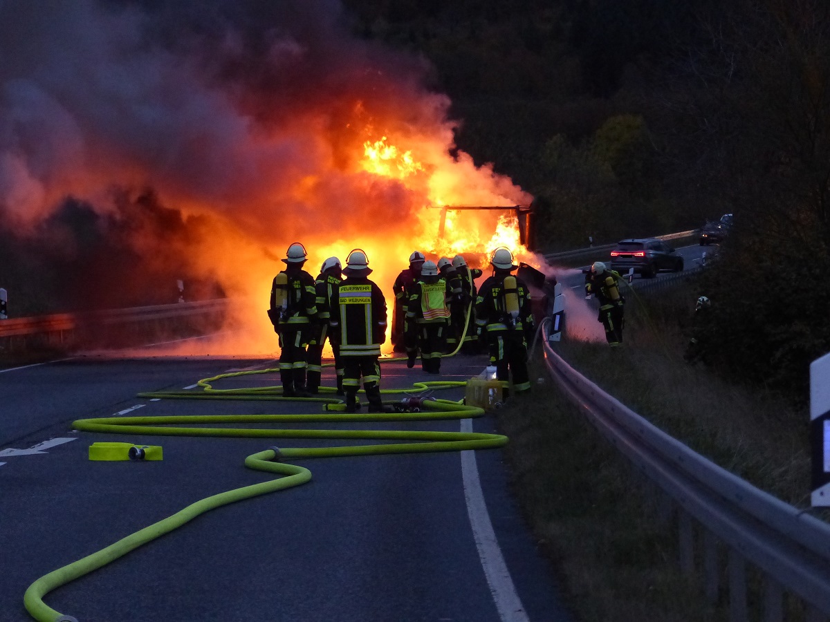 Während der Lösch- und Bergungsarbeiten war die Bundesstraße 253 in beide Richtungen bis etwa 21:30 Uhr voll gesperrt.