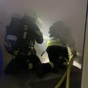 Umgehend gingen zwei Atemschutztrupps, mit C-Rohren und Wärmebildkameras ausgerüstet, zur Personenrettung und Brandbekämpfung in das Gebäude vor. Nach kurzer Zeit konnten drei Personen aufgefunden und ins Freie verbracht werden. Auch der angenommene Brand konnte rasch gelöscht werden. Im Anschluss wurde das Gebäude mit einem Drucklüfter entraucht.