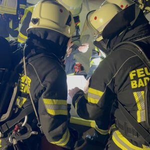 Nach Beendigung der Übung wurde eine Nachbesprechung durchgeführt. Dabei bedankte sich Wehrführer Alexander Conradi, der die Übung ausgearbeitet hatte, für die zur Verfügungstellung des Übungsobjektes und zeigte sich sehr zufrieden mit dem Ablauf der Übung.
