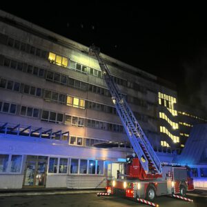 Zwei weitere Personen wurden über die Drehleiter aus einem Fenster im 5. Stock gerettet und in Sicherheit gebracht.