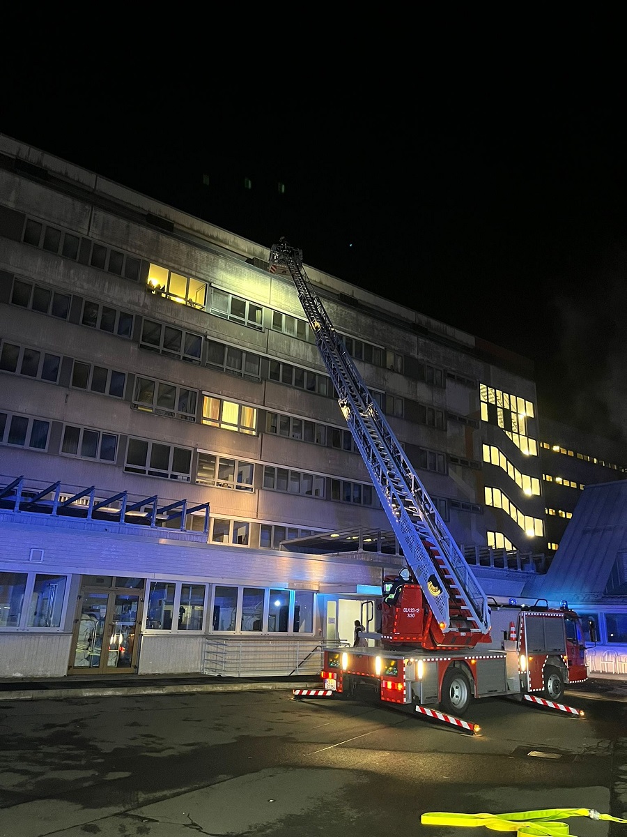 Zwei weitere Personen wurden über die Drehleiter aus einem Fenster im 5. Stock gerettet und in Sicherheit gebracht.