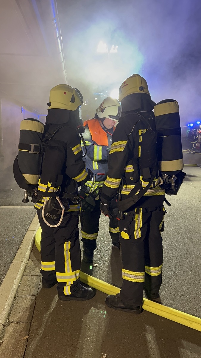 Nach Beendigung der Übung wurde eine Nachbesprechung durchgeführt. Dabei bedankte sich Wehrführer Alexander Conradi, der die Übung ausgearbeitet hatte, für die zur Verfügungstellung des Übungsobjektes und zeigte sich sehr zufrieden mit dem Ablauf der Übung.