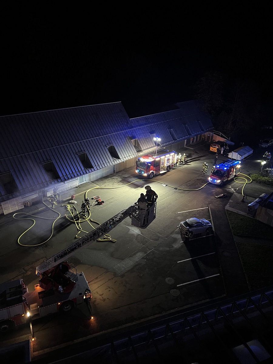 Beim Eintreffen an dem Übungsobjekt konnte der Einheitsführer des Vorauslöschfahrzeuges feststellen, dass im hinteren Bereich der Klinik ein Feuermelder in einer Werkstatt Alarm geschlagen hatte. Bereits bei Annäherung an den Bereich war eine starke Rauchentwicklung zu erkennen. Nach Befragen der Mitarbeiter konnte herausgefunden werden, dass es in der Werkstatt zu einer Verpuffung gekommen war und sich noch mehrere Personen im Objekt befanden – aufgrund dessen wurde das Einsatzstichwort auf „F 3 Y“ (Brand in einem Sondergebäude mit Menschenleben in Gefahr) erhöht.