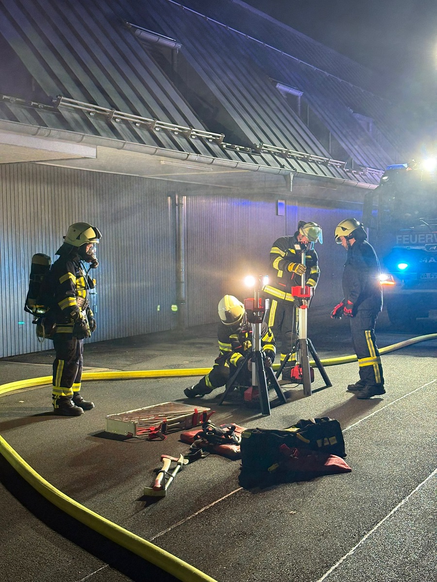 Umgehend gingen zwei Atemschutztrupps, mit C-Rohren und Wärmebildkameras ausgerüstet, zur Personenrettung und Brandbekämpfung in das Gebäude vor. Nach kurzer Zeit konnten drei Personen aufgefunden und ins Freie verbracht werden. Auch der angenommene Brand konnte rasch gelöscht werden. Im Anschluss wurde das Gebäude mit einem Drucklüfter entraucht.