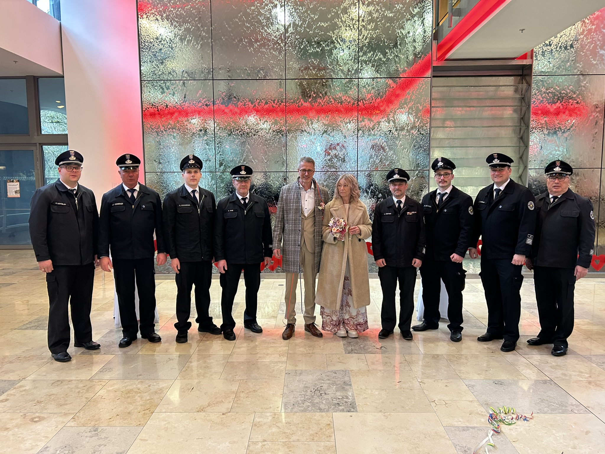 6 Dez. 2025 Herzlichen Glückwunsch von Udo Paul | Veröffentlicht in: Verein | 0 Heute Mittag haben wir unserem Kamerad und Stadtbrandinspektor a.D. Ralf Blümer und seiner Braut Britta zur Hochzeit gratuliert. Wir wünschen euch alles Gute für eure gemeinsame Zukunft. Eure Kameradinnen und Kameraden der Feuerwehr Bad Wildungen