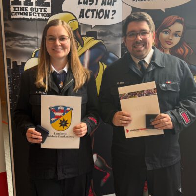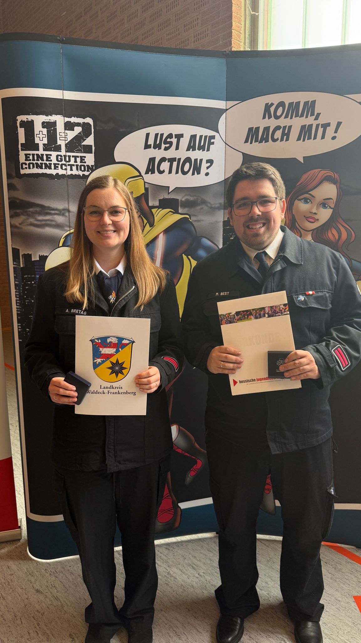 Bei der 50. Delegiertenversammlung der Kreisjugendfeuerwehr Waldeck-Frankenberg in Twistetal-Twiste wurde Annika Kuhn mit der Ehrenplakette der Kreisjugendfeuerwehr im KFV Waldeck-Frankenberg in Gold und Marius Best mit der Florian-Medaille der Hessischen Jugendfeuerwehr in Silber für ihre Tätigkeiten in der Jugendfeuerwehr ausgezeichnet.