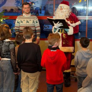 Im Anschluss überbrachte er seine Weihnachtsgrüße und hatte für jedes Klind eine Tüte voll mit Süßigkeiten dabei.