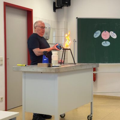 Hierzu zeigte Udo Paul spannende Brandversuche und erklärte wie sich Feuer verhält und wie man sich richtig verhält, wenn es brennt.